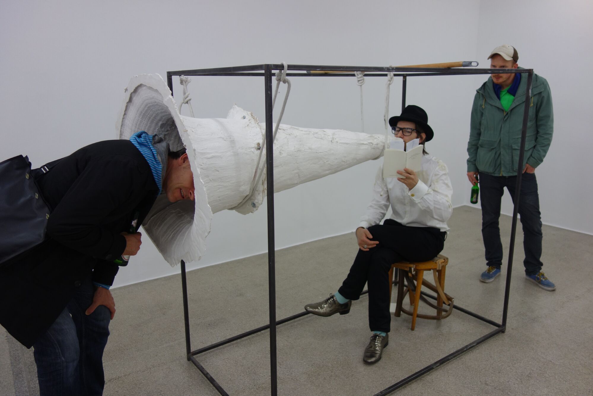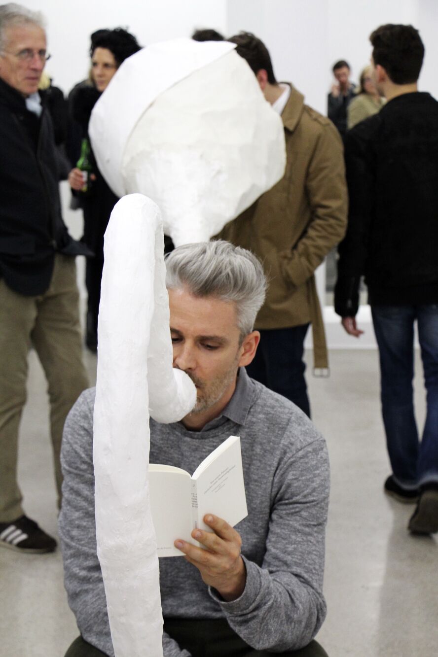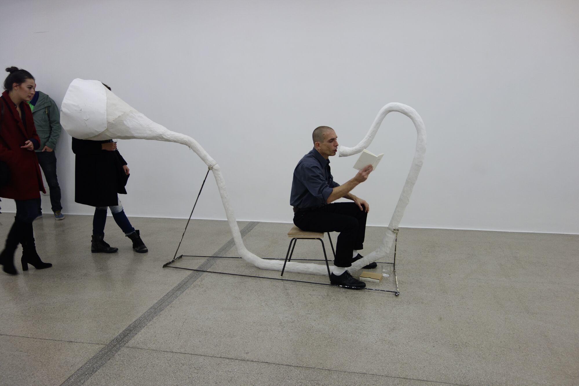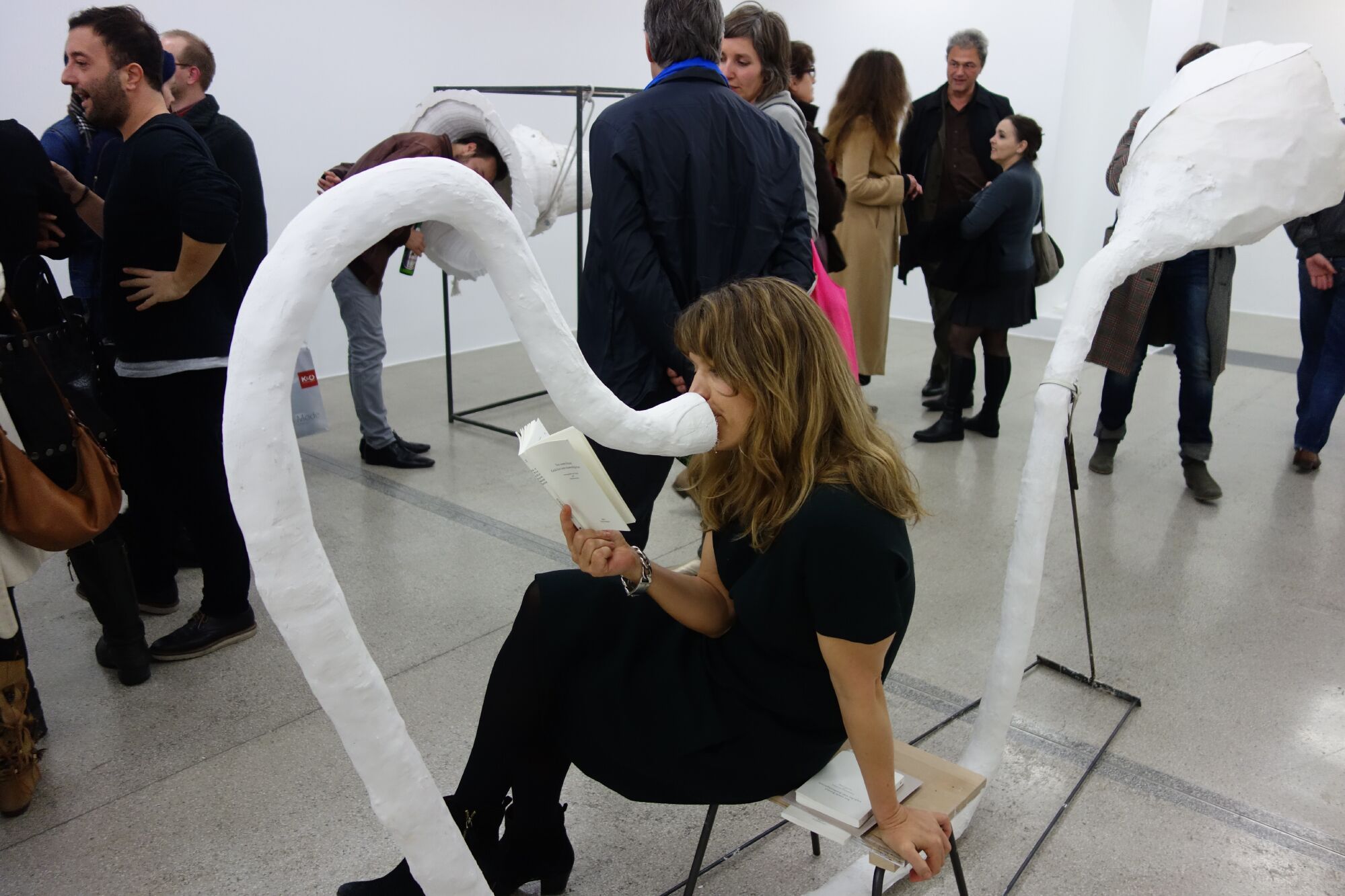 Book presentation with loud hailer-megaphone-amplified whisper-sculptures and book signing.
