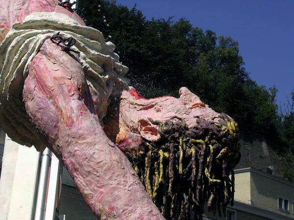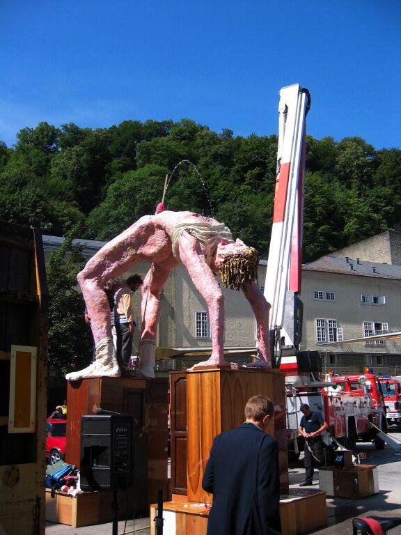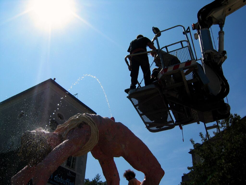 7 meters tall fountain: wood, furniture, steel, 2000 kg plasticine