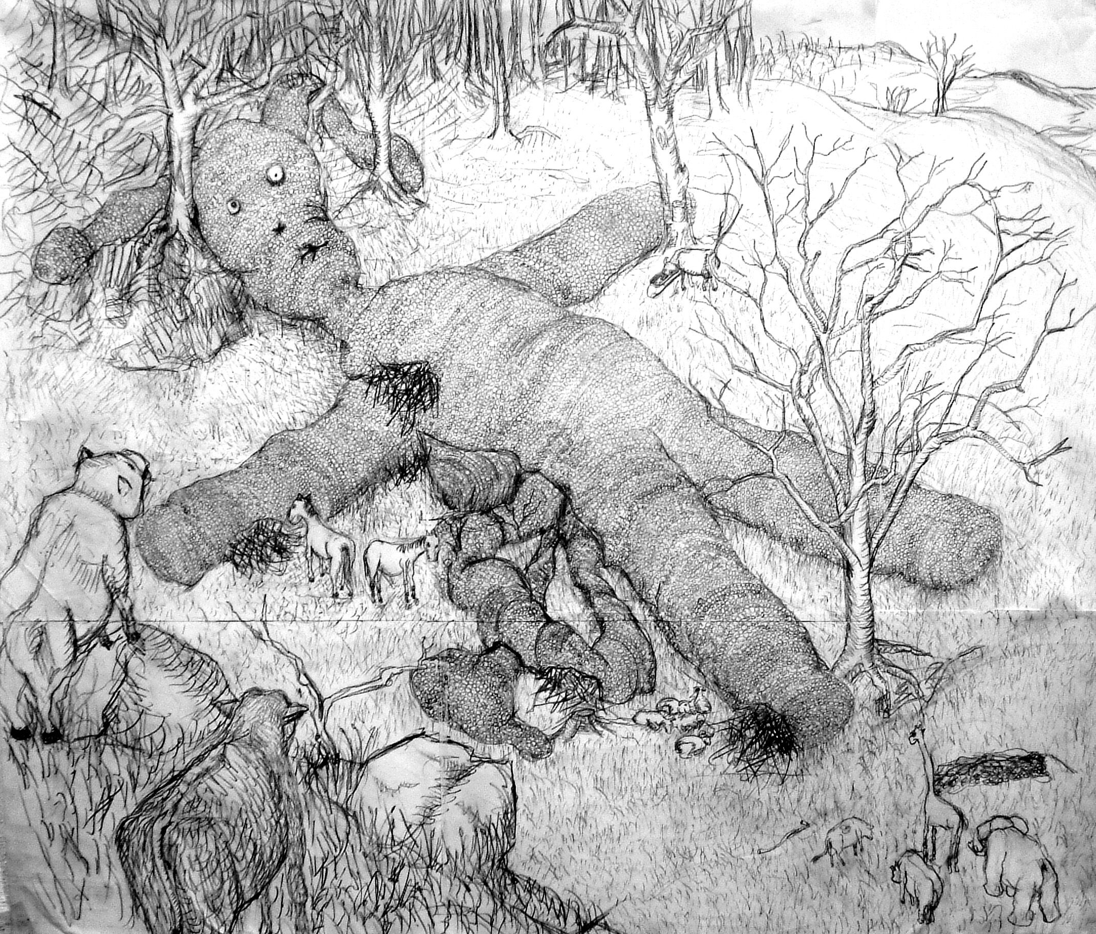 The things one finds wandering in a landscape: familiar things and utterly unknown, like a flower one has never seen before, or, as Columbus discovered, an inexplicable continent; and then, behind a hill, as if knitted by giant grandmothers, lies this vast rabbit, to make you feel as small as a daisy.